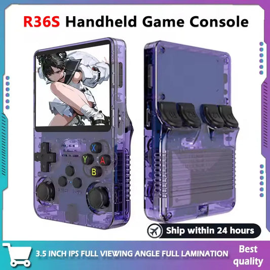 R36S Portable Open Source Game Console 64G 128B 3.5 Inch IPS Screen Linux Player with 15000 Preloaded Games Orange